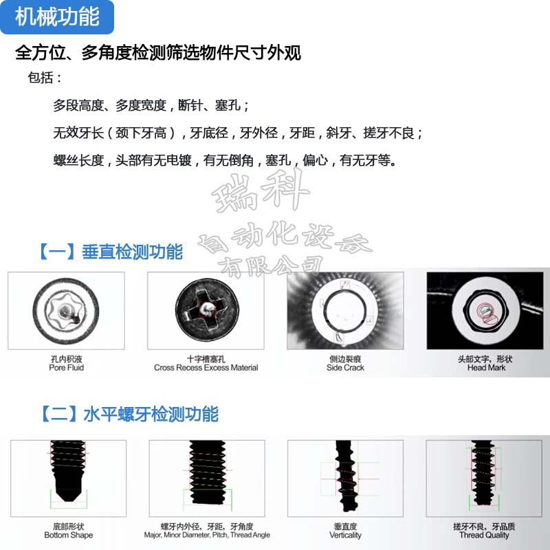 硬體配備包含振動送料機、下料軌道、檢驗平台、計算機係統為一安全、便利,且節省人力成本的自動化設備。分別介紹如下: