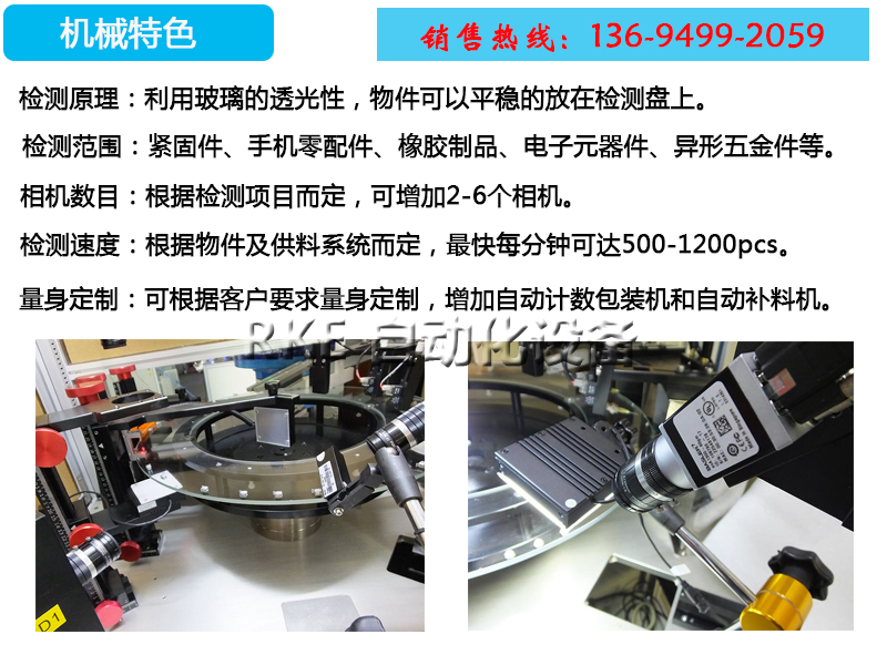 CCD影像篩選設備檢測連接器外觀,利用玻璃的透光性,把物品放在玻璃盤上進行檢測,節省勞力,檢測速度快,效率高。